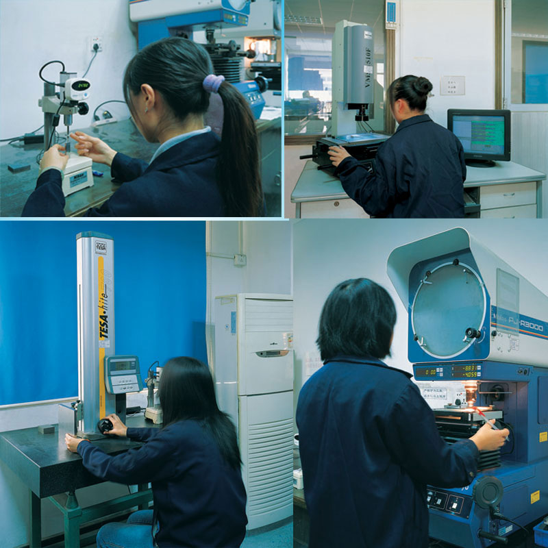 当社では、いち早く第三者機関によるISO9001を認証取得し、品質管理体制を確立しています。また、高品質、高精度を保つため、空調設備の整った、測定室および生産工場内を24時間恒温管理を行っています。長年金型の製作経験を持ち、全数測定して、公差も全箇所検査を行い。国内の標準GB、日本標準JIS、ドイツ標準DIN、アメリカ標準AISIなど国際の標準によって加工しております。